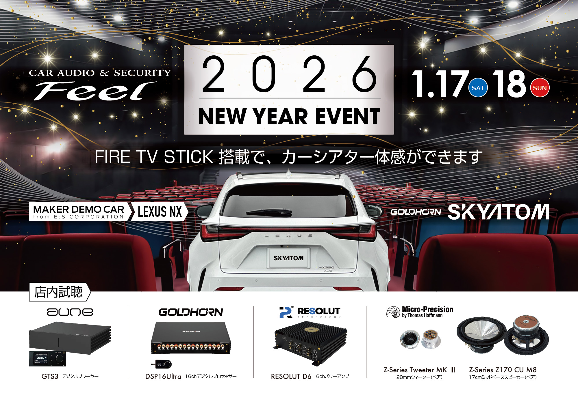 1/17(土)・18(日) 山梨県甲府市“フィール”にてレクサスNXを試聴展示いたします!