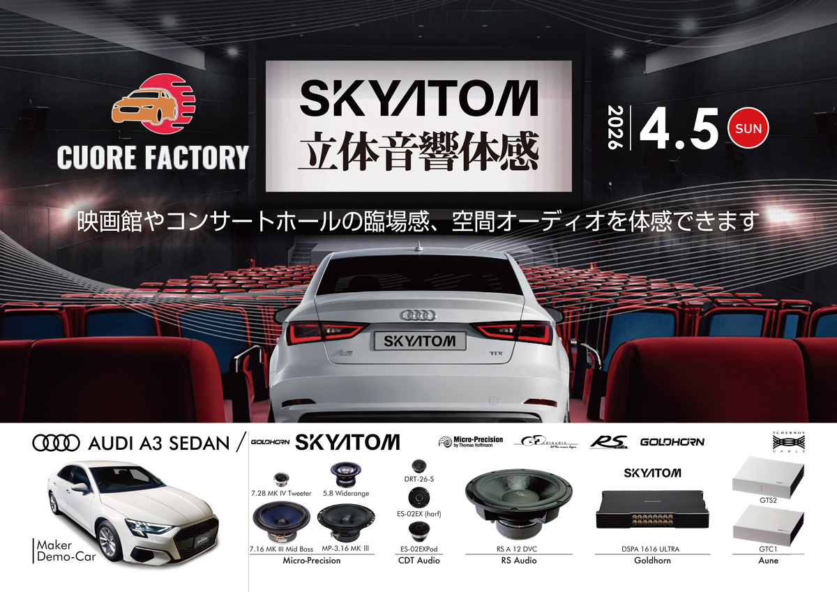 2026年4月5日(日)、長野県上伊那郡のCUORE FACTORY(クオーレファクトリー)にて『SKYATOM立体音響体感イベント』が開催されます。